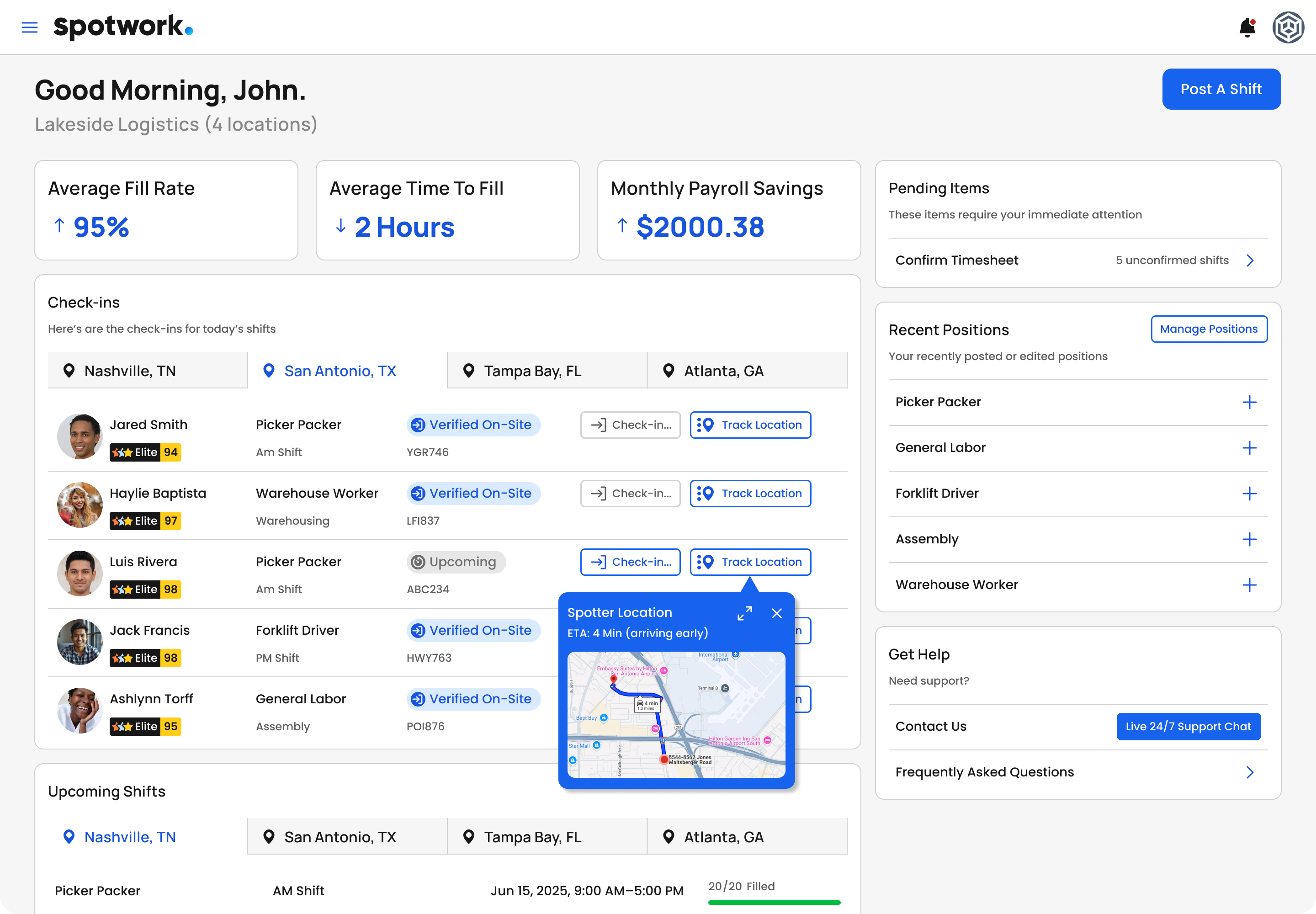 Spot365™ provides real, around-the-clock support for everything from onboarding and shift posting to day-of assistance — helping teams stay efficient and resolve issues quickly.