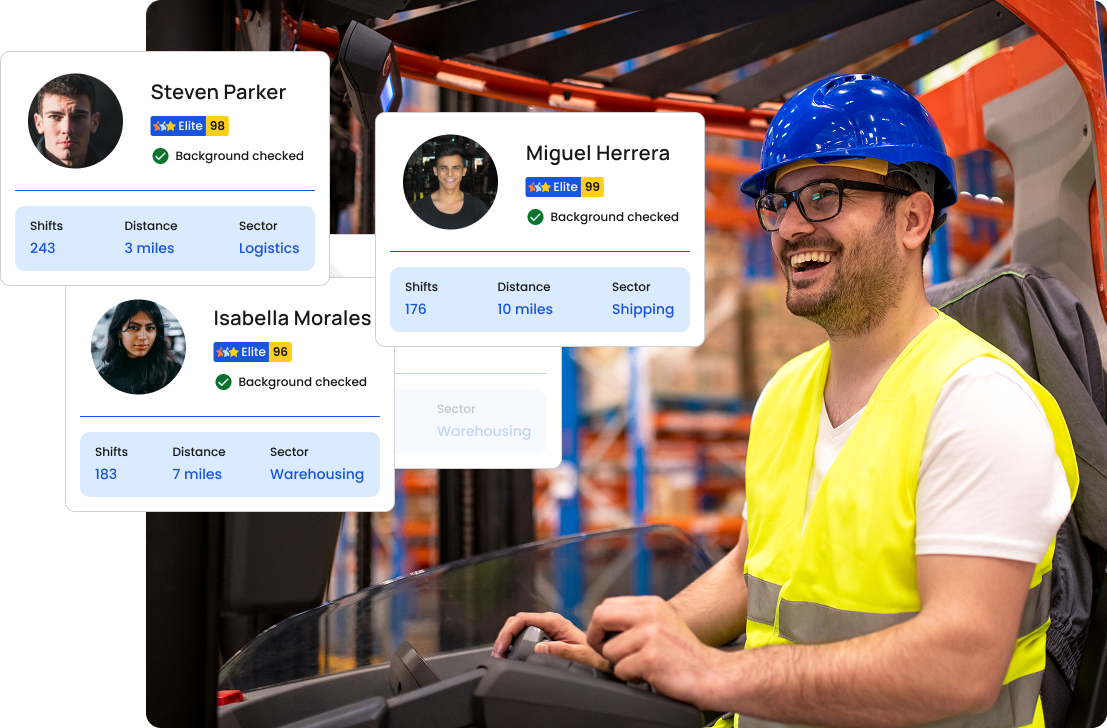 Get a simple, transparent look at a Spotter’s past participation with SpotScore™— including attendance patterns, shift history, and company feedback — so you can make confident choices quickly.